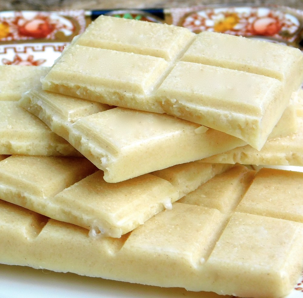 Potete variare il sapore del vostro cioccolato bianco utilizzando latti in polvere di diversa natura (riso, avena, nocciola, quinoa, mandorla ecc).