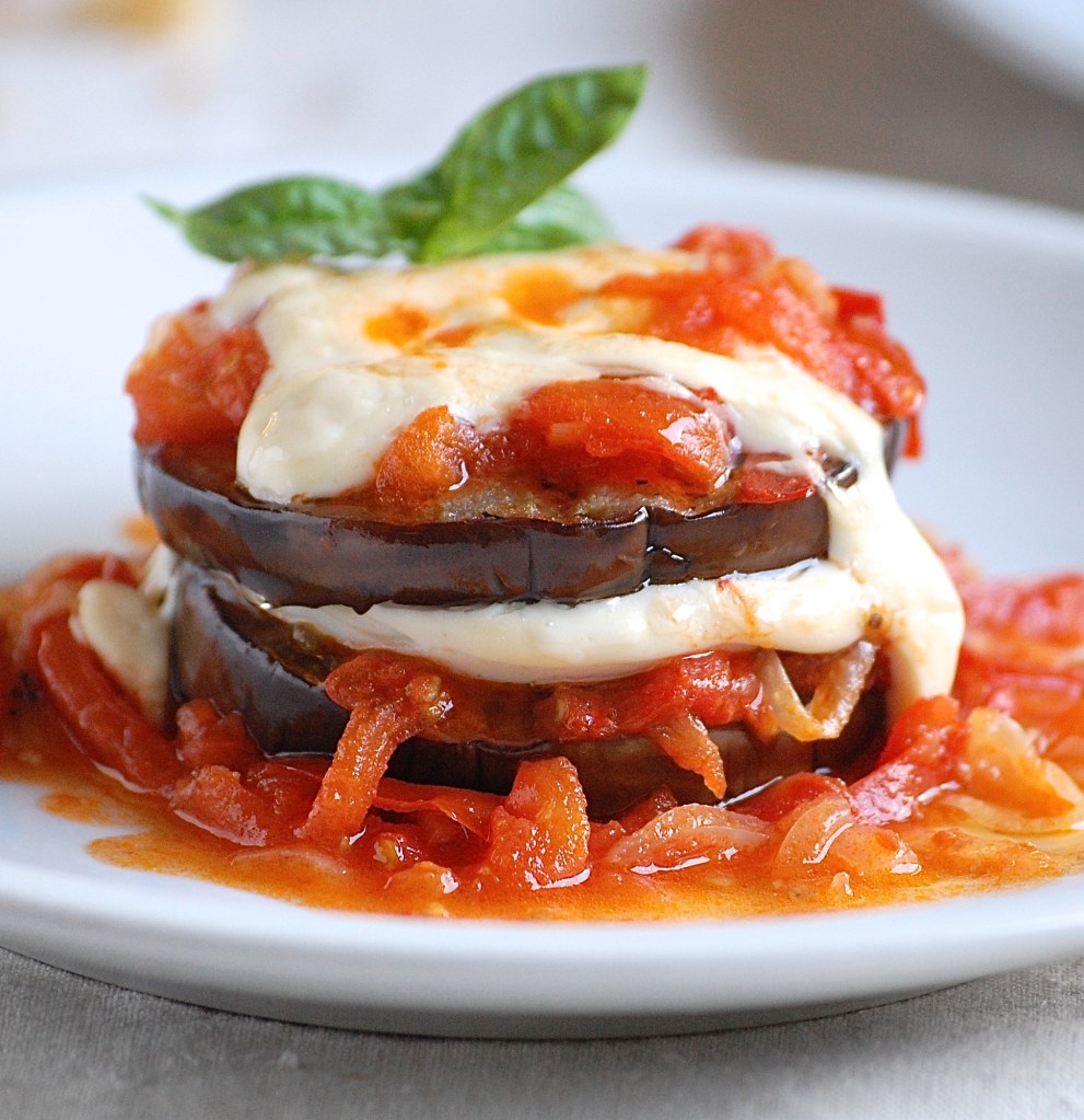 Tagliate la melanzana a fette rotonde di circa 7/8 mm di spessore, spennellatele con un velo di olio da entrambe le parti, salatele leggermente e grigliatele su una bistecchiera oppure cuocetele in forno su una teglia alla temperatura di 200°