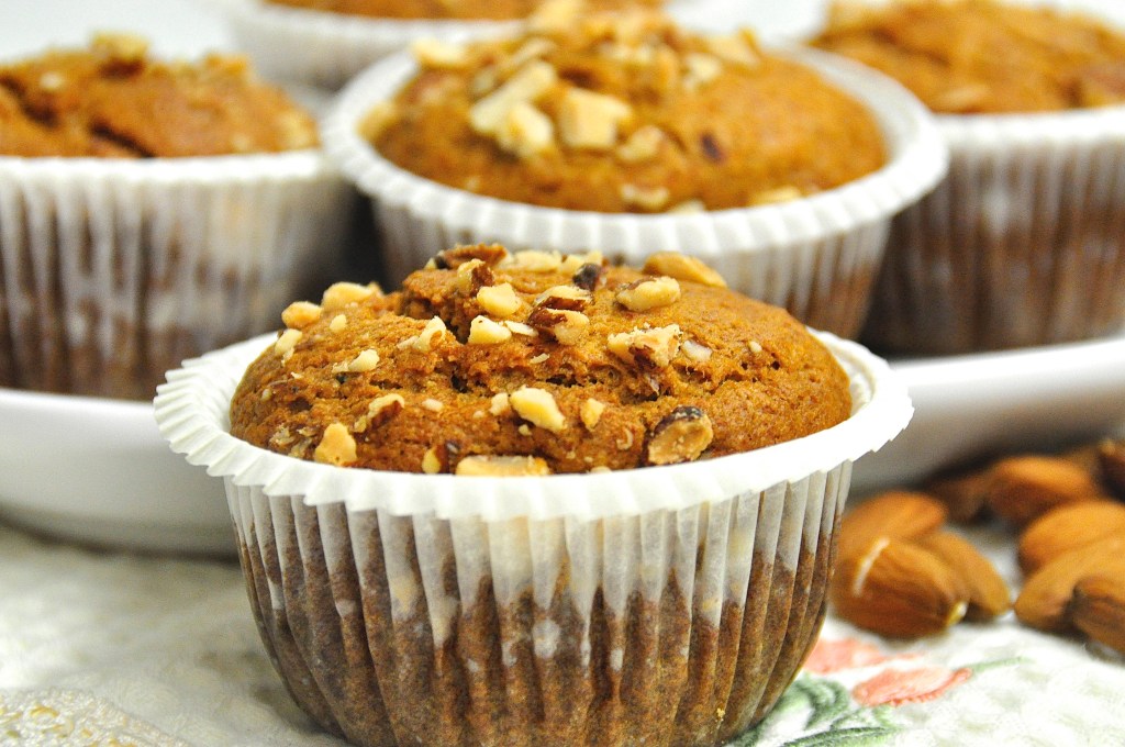 Ungete e infarinate gli stampi da muffins e versate l’impasto, cospargetelo con un cucchiaino di granella di mandorle e mettete in forno a 180° per circa 20/25 minuti. Fate la prova stecchino e sfornate.