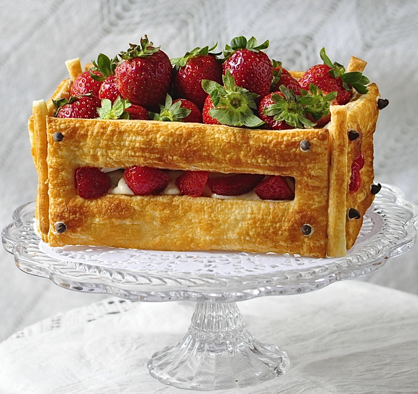 Questo dolce fresco e squisito deve essere assemblato non prima di un’ora dal consumo per evitare che la pasta sfogliata perda la sua croccantezza e friabilità