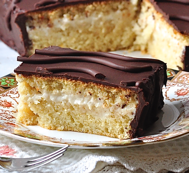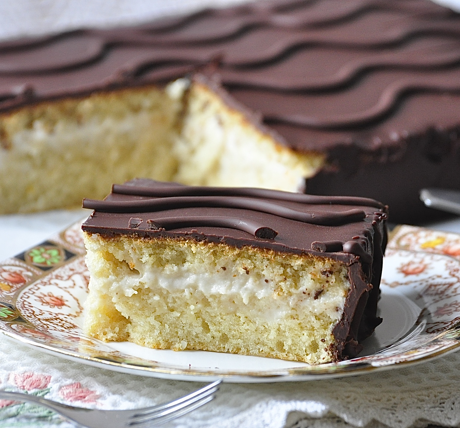 Tagliate in 2 il Pan di Spagna, bagnatelo generosamente con la bagna all’arancio, stendete la crema l’arancio, bagnate anche l’altra metà e sovrapponetela. Mettete in frigorifero per mezz’ora.