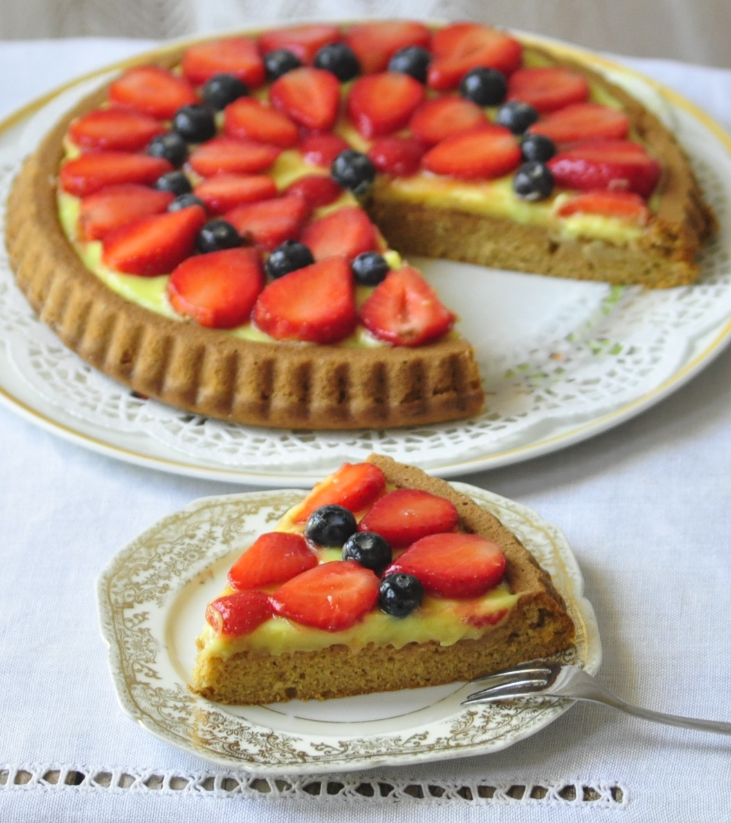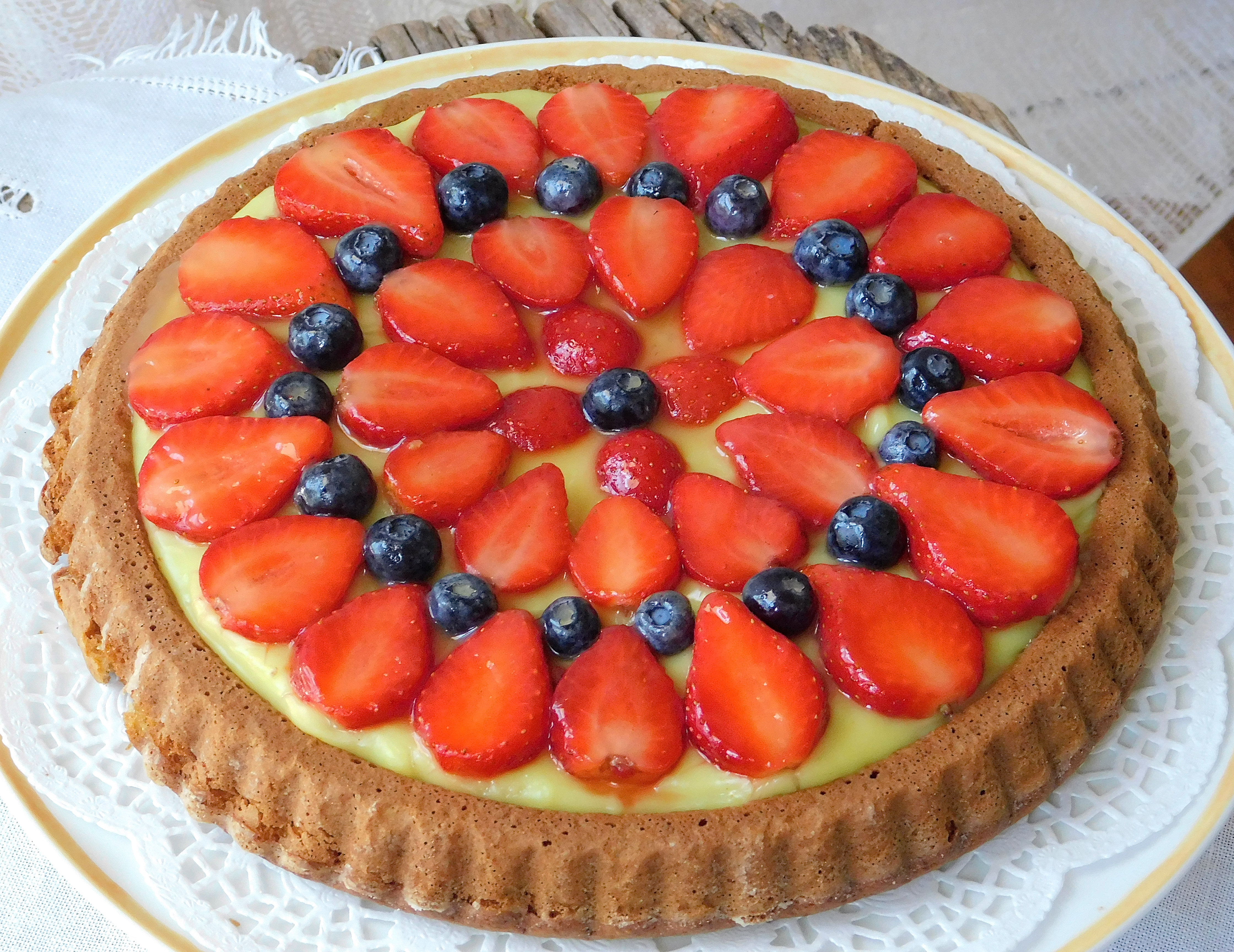 Scolate le fragole e con il succo bagnate leggermente il fondo della torta.