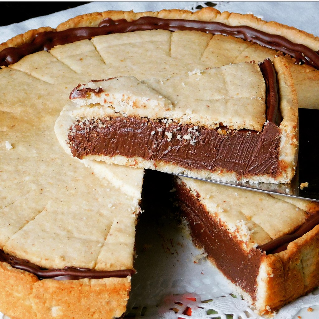 Posizionate il cerchio di pasta frolla e premete leggermente per fare risalire un po’ di Nugatella nella fessura tra la base e il cerchio di copertura. Lasciate solidificare prima di tagliare la torta.