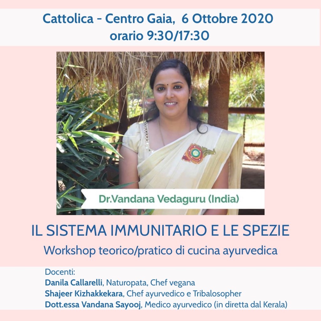 Oltre a me, saranno presenti Shajeer Kizhakkekara, come Consulente Tribalosopher e Chef Ayurvedico e, online dall’India, la Dottoressa Vandana Sayooj che ci parlerà di come sia possibile e semplice utilizzare le conoscenze dell’Ayurveda per rinforzare la nostra Immunità.